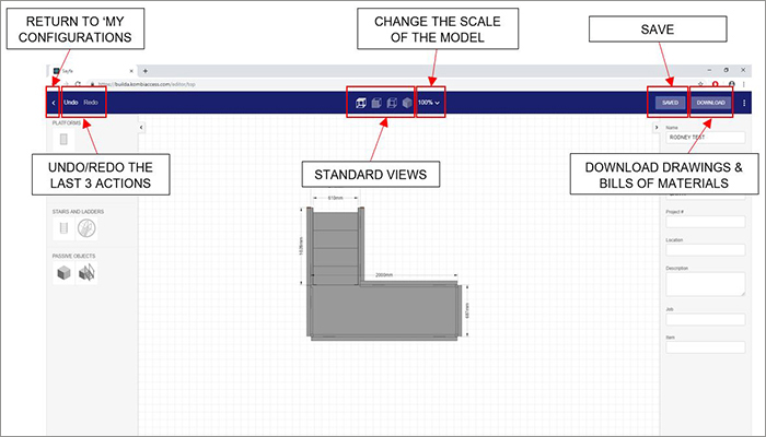 Once you have finished your design, click to download drawings and bills of materials. Please note, at present the part codes must be confirmed as they are still being input into our system.